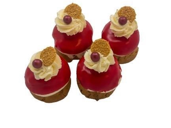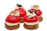 Een heerlijk koekje met een bodem van een bitterkoekje en afgewerkt met botercreme en in kerststijl.